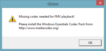 Missing codec error when using FMV pack:- You may see this error when playing the game using the FMV pack.