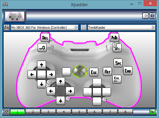 Tomb Raider was released before analogue controllers were commonplace and therefore supports only digital gamepads. Searching around the internet we found this page, which claimed to offer a pre-configured controller setup for the Xbox 360 controller. The files were designed for the Steam version of the game, we weren’t able to adapt them to work with our CD original. Instead, it’s better to use that essential retrogaming tool, Xpadder. Below is a picture of the Xpadder profile we created for the game.