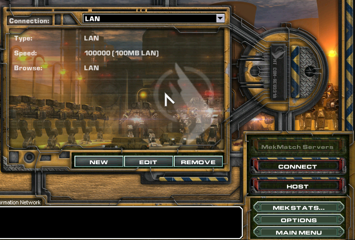 One computer needs to be the server, this should be the most powerful PC participating in the game. This player should click on “Host”. The other players should click on “New” and follow the on-screen prompts to set up a LAN game connection. Once that is done, click on “Connect”. After a short pause, you should see a server browser and hopefully the game that is being hosted on your LAN.