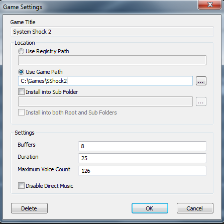 System Shock 2 is not officially supported by ALChemy but it can be added manually and will then work just fine. Start the ALChemy tool and click on “Add”. Configure the System Shock 2 profile as shown below:-