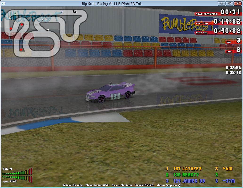 Driving games have always been popular, allowing us to drive cars we’ll never so much as touch in the real world, at speeds that would frighten even a trained racing driver. With that in mind, it might seem silly to create a game about racing radio controlled race cars, which is exactly what Bumblebeast software did when they launched Big Scale Racing. Why simulate something that you could just go out and try for yourself? Perhaps surprisingly, Big Scale Racing turns out to be an extremely playable and addictive little game, one that is sadly languishing in copyright limbo since the original developers disappeared.