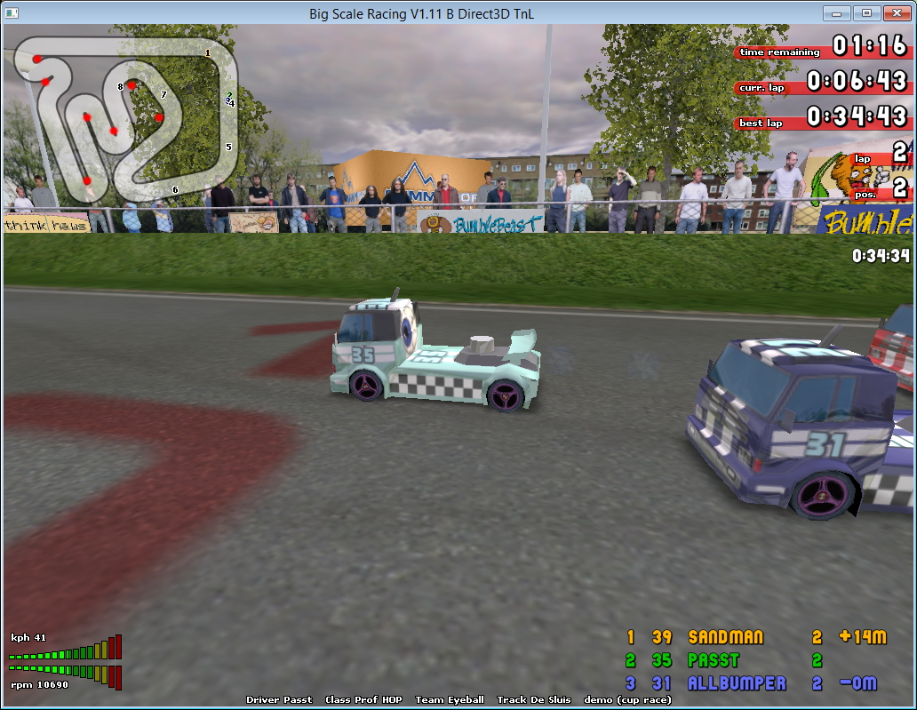Problems saving games or settings – Like many older games, Big Scale Racing places its save game files and various configuration files in the same directory that it is installed to. This can cause problems on more modern versions of Windows as programs are not normally permitted to write to the program files directory. To avoid this problem, either install the game to an alternate location (e.g c:\Games\BigScaleRacing) or manually edit the permissions on the “Big Scale Racing” folder. If you used the default installation directory when installing, the games folder can be found at “C:\Program Files (x86)\BumbleBeast\Big Scale Racing”. A tutorial on how to edit folder permissions can be found here.