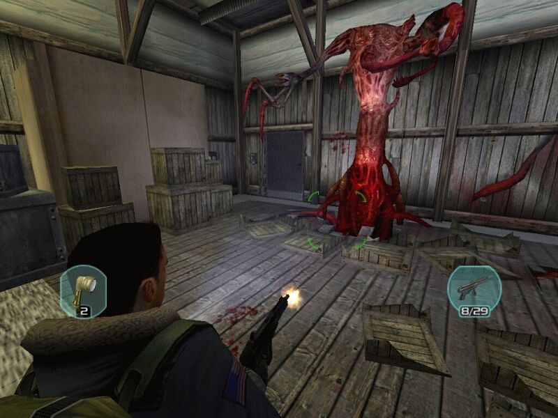 Unlike most PC games, The Thing has almost no user-configurable graphics settings. The only two settings that can be configured are “Resolution” and “Colour Depth”. To access these options, start the game and from the main menu, go to “Options” and then “Audio/Video”. Resolution should be set as high as your monitor will allow. If you installed the latest patch, the game should support widescreen screen modes just fine. Colour depth should always be set to 32 on a modern PC.